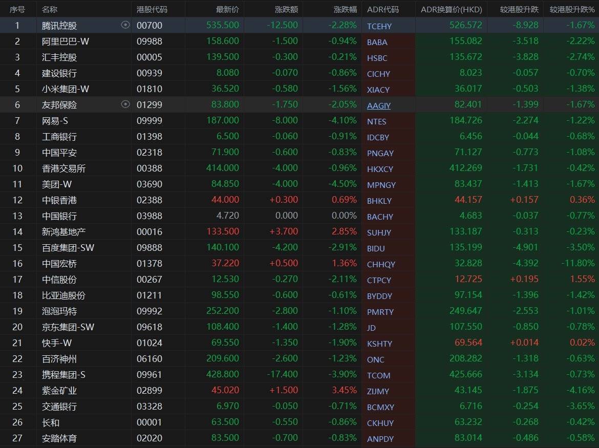 大型蓝筹股大量下落,汇丰控股收报135.672港元万博manbext体育官网app官网,较香港收市跌2.74%;腾讯控股收报526.572港元,较香港收市跌1.67%。