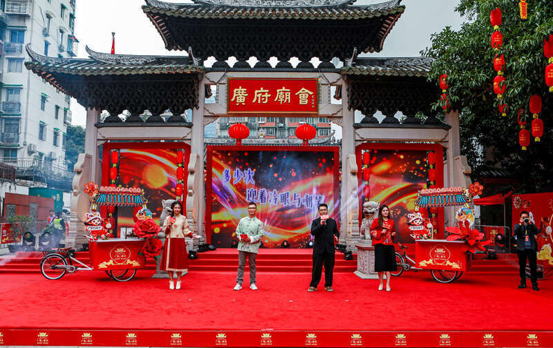 非遗蚁合是广府庙会一直以来的牌号。本年,广州越秀梅花村街杨箕村非遗巡游按期演出,八音都鸣、龙狮献瑞、财神送福、太极神韵等按次登场。本届广府庙会联动全域、围聚在北京路文化中枢区主会场打造四大国潮非遗市场。